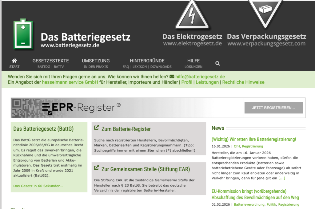 Ich spare mir hier die Einzelheiten der europäischen Verordnung. Kurz gesagt muss jeder, der solche Geäte anbietet, sich als Händler registrieren, auch wenn er keine Batterien verkauft. Kriterium ist das „Inverkehrbringen“, unabhängig davon ob die Batterie oder der Akku eingebaut sind oder nicht.